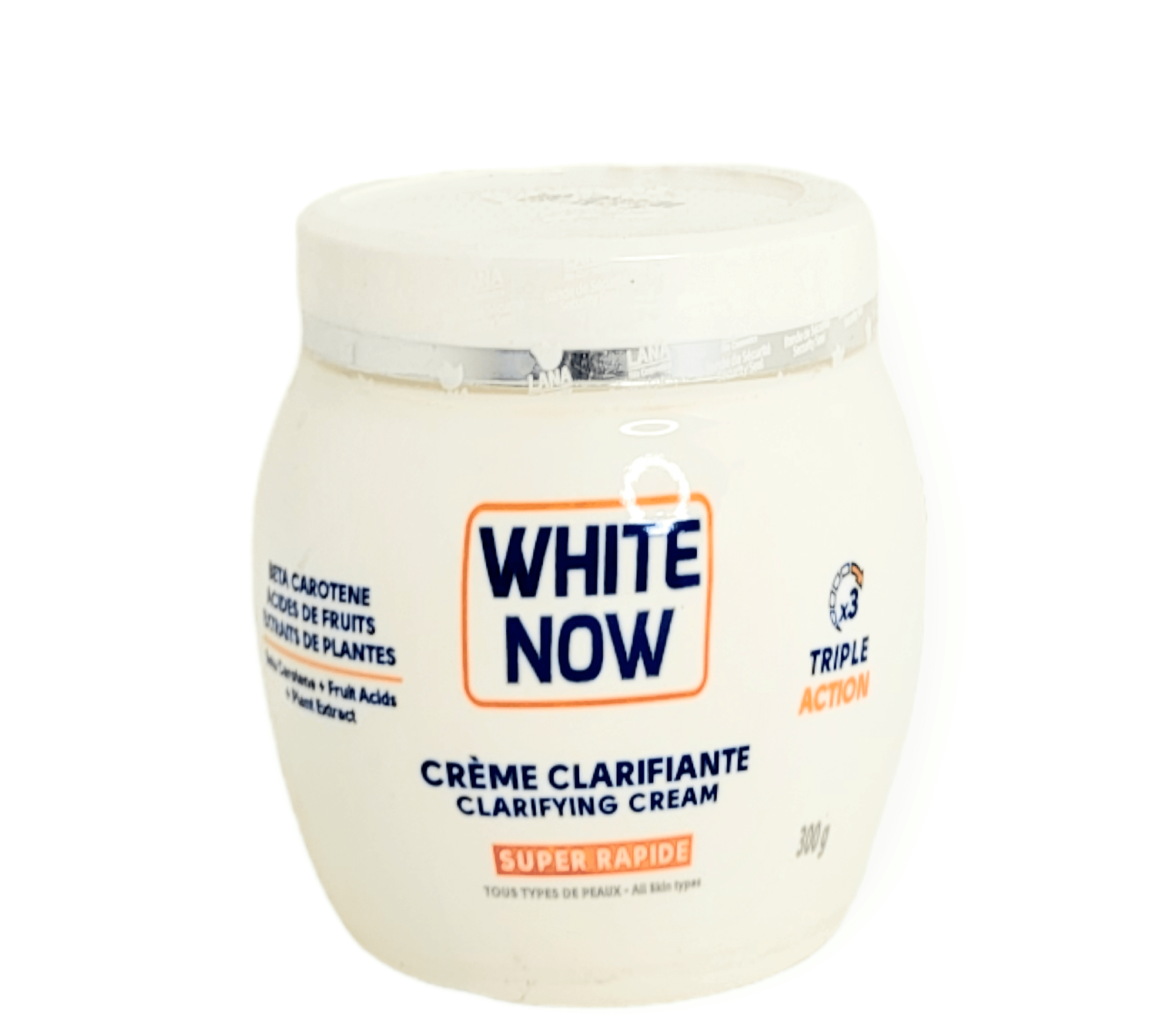 La crème corporelle super eclaircissant White Now est une gamme a triple efficacité rajeunit adoucir lisse unifiant Anti-tâche illumine naturellement ultra rapide riche en bêta carotène et acides de fruits +plantes naturelles cette gammes et un perfecteur de teint nettoie en profondeur élimine même les Quintaux les premièrs résultats sont visibles à moins de 7 jours.