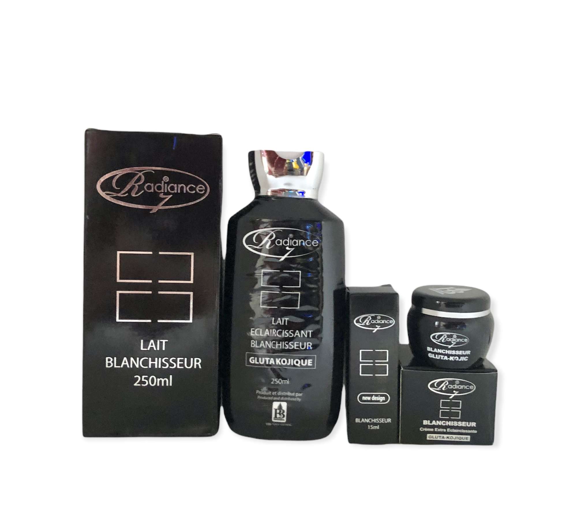 Gamme blanchissant Radiance 7 a été spécialement conçu pour vous donnez un teint propre, lisse et claire. Sa formule riche en complexe éclaircissant favorise l’éclaircissement de la peau tout en l’hydratant. Avec ce lait votre teint devient harmonieux et souple.