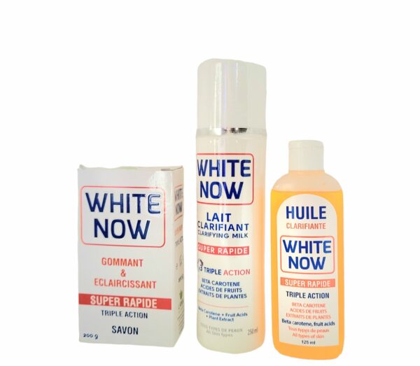 les produits de la marque white now ultra rapide nourrissant supprime les tâches cicatrices coudes genoux doigts orteil en laissant la peau unifiée. 250 ml