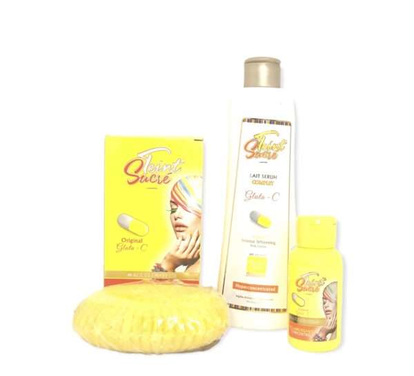 Le lait Teint sucré Glutathione comprimé procure une hydratation à la peau. Ses principaux ingrédients sont: le Glutathione,Vitamine C Acide hyaluronique, vitamine C, Collagen,Arbutine, les huiles essentielles, coenzyme Q10 qui rendront votre peau éclatante. Elle contient du Glutathione en comprimé qui possède des propriétés éclaircissant facilite aussi le nettoyage des impuretés contenues dans les cellules de la peau. Le lait Glutathione VitamineC extra blanchissants et aux huiles essentielles laissera votre peau plus claire, plus jeune, plus douce au touché et parfaitement hydratée pour une peau plus fraîche. La vitamine C assure l’équilibre d’hydratation naturel de la peau. L’effet de l’acide hyaluronique rend votre épiderme plus lisse, plus jeune, plus claire et plus doux en 5 jours seulement.