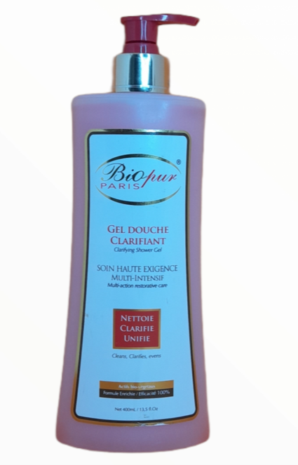 Le gel douche clarifiant Biopur a été formulé avec des extraits de plantes rigoureusement sélectionnées pour leur qualité et leur effience, pour répondre aux problèmes des zones sombres des peaux noires. Mise au point pour le plus grand respect de l’épiderme, le gel douche clarifiant Bio Pur lave et prend soin de la peau en toute sécurité et dans la plus grande douceur. Sa mousse fine et délicatement parfumée qui se rince très facilement. Dès les premières, applications vous retrouverez une peau propre, douce et satinée avec un teint unifié.