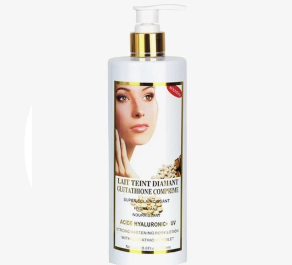Le lait Teint diamant Glutathione comprimé procure une hydratation à la peau. Ses principaux ingrédients sont: le Glutathione comprimé, Acide hyaluronique, vitamine C, Collagen,Arbutine, les huiles essentielles, coenzyme Q10 qui rendront votre peau éclatante. Elle contient du Glutathione en comprimé qui possède des propriétés éclaircissant facilite aussi le nettoyage des impuretés contenues dans les cellules de la peau. Le lait Glutathione comprimé extra blanchissants aux collagène et aux huiles essentielles laissera votre peau plus claire, plus jeune, plus douce au touché et parfaitement hydratée pour une peau plus fraîche. La vitamine C assure l’équilibre d’hydratation naturel de la peau. L’effet de l’acide hyaluronique rend votre épiderme plus lisse, plus jeune, plus claire et plus doux.