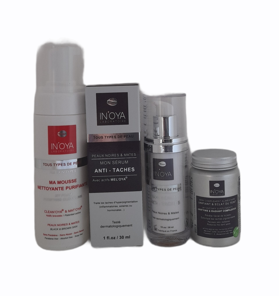 Mousse, Sérum anti taches, et complément alimentaires In’oya