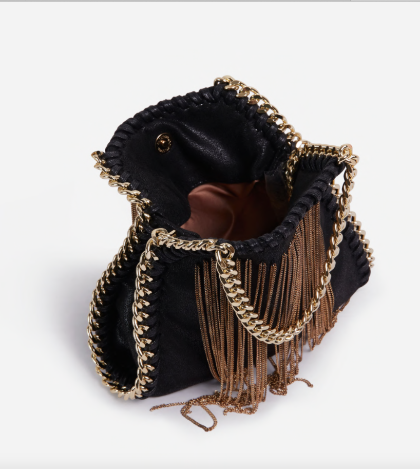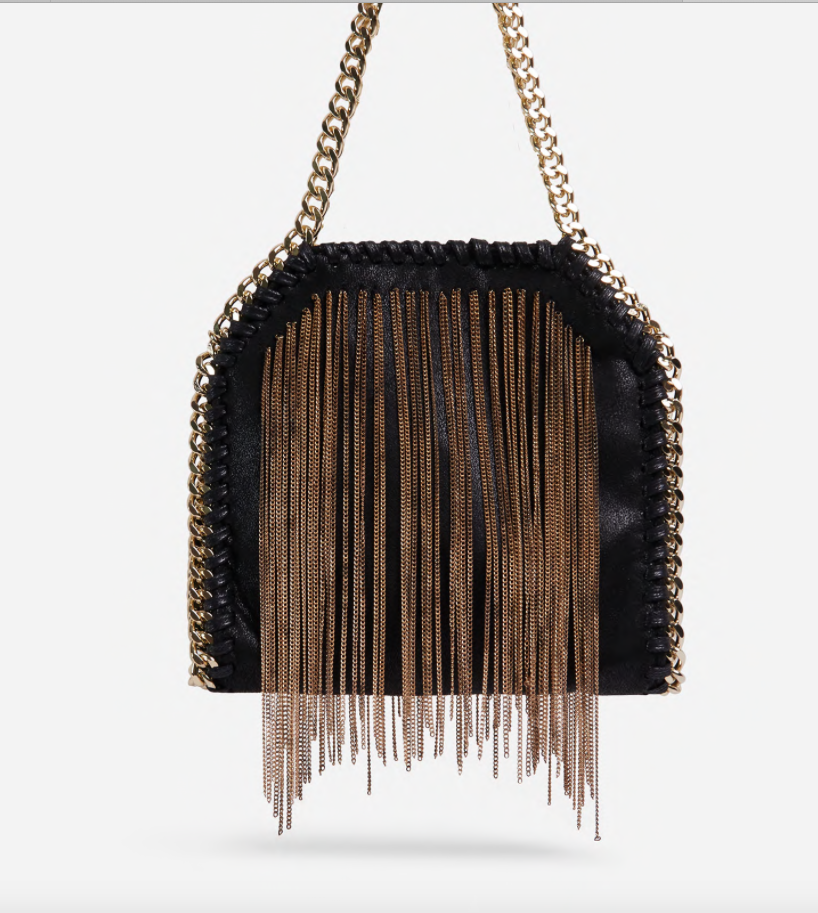 Toujours besoin d’un sac à main, et celui-ci nous fait tomber amoureux de sa matière simili cuir noir, avec des glands et détails en chaîne dans un sac à bandoulière. Nous sommes en pleines éblouissons devant ce sac.