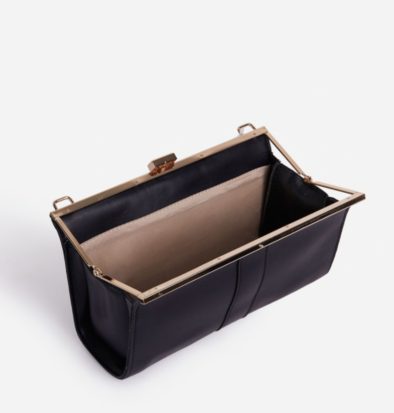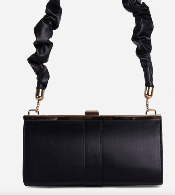 Canon le sac à porté épaule en similicuir noir. On adore ses détails et son coté glamour !