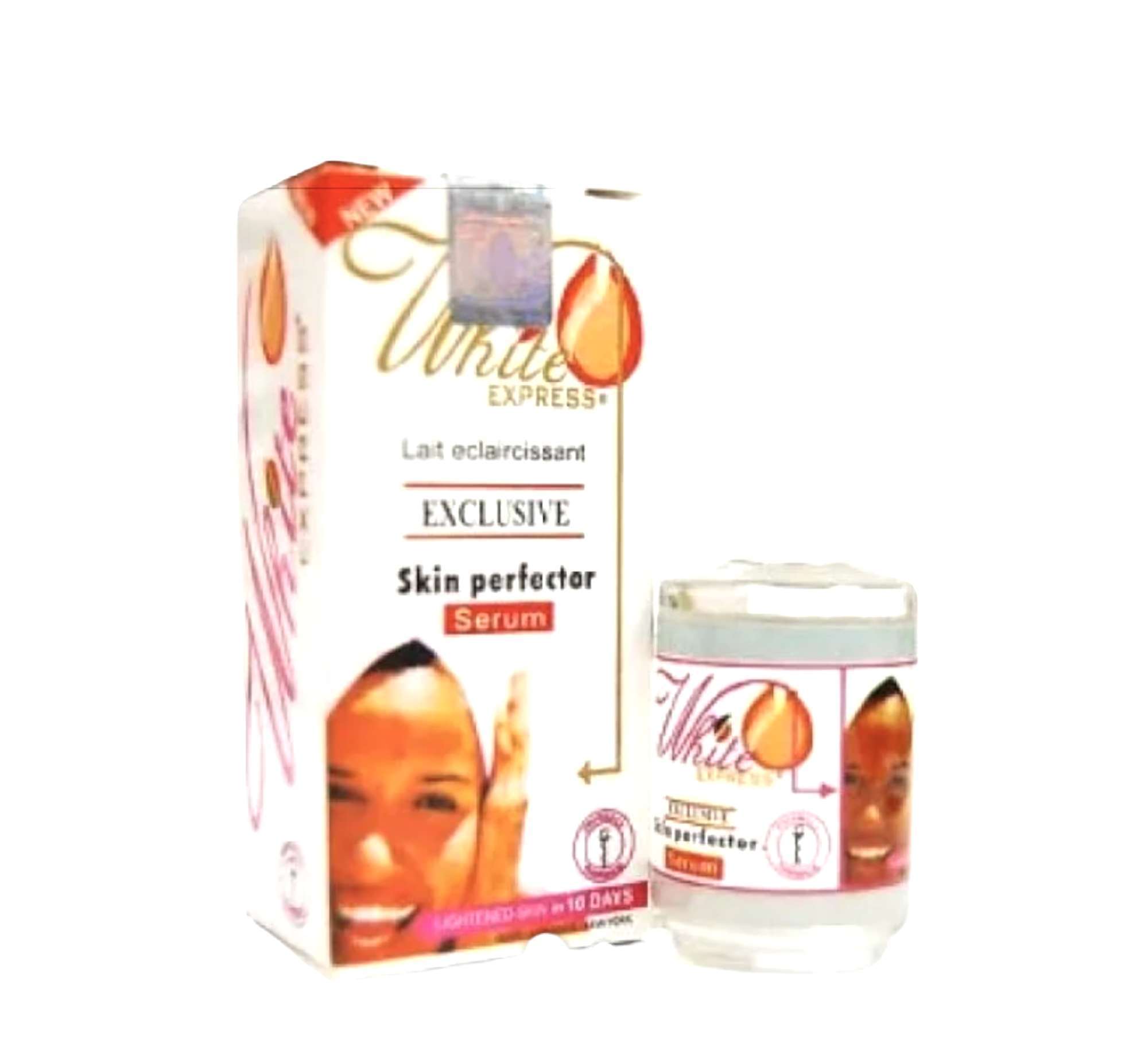 Grâce à sa formule avancée au Butyresorcinol et aux acides alphas hydroxylés (AHA), le lait et sérum de beauté éclaircissant White Express est un véritable soin dépigmentant conçu sous contrôle médical. Il traite les couches supérieures de l’épiderme pour éliminer l’excès de sébum, les points noirs et les impuretés pour redonner un teint clair et uniforme en 10 jours seulement.