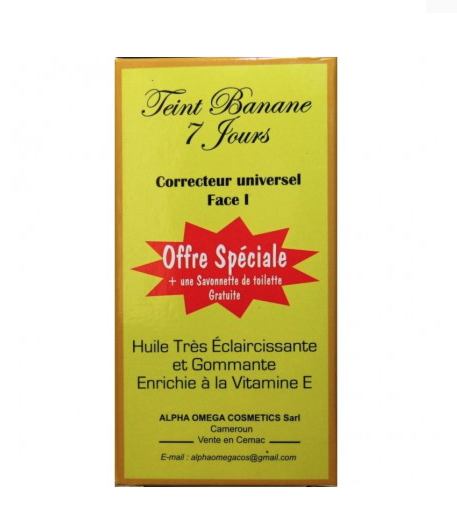 Teint Banane 7 jours correcteur universel N°1 Huile très éclaircissant et gommant enrichie à la vitamine E+petit savon de toilette